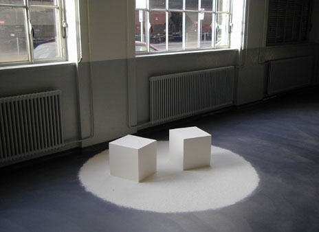 Mehl enthält eine Feuchtigkeit von 14%. Über die Ausstellungsdauer von zehn Tagen trocknen die Körper langsam aus, Risse bilden sich und Kanten brechen ab.