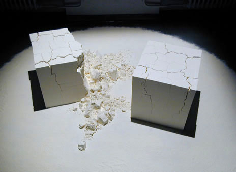 Mehl enthält eine Feuchtigkeit von 14%. Über die Ausstellungsdauer von zehn Tagen trocknen die Körper langsam aus, Risse bilden sich und Kanten brechen ab.