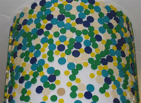 SWX Auf den18 Säulen, welche bereits mit einem Stahlblech ummantelt waren, legten wir ein lockeres Streumuster an, bestehend aus Tausenden von farbigen Magneten.