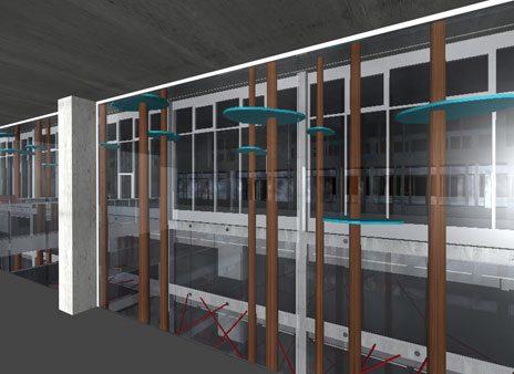 Mit unserer Intervention möchten wir die Lichthofhalle um attraktive Erholungszonen erweitern.