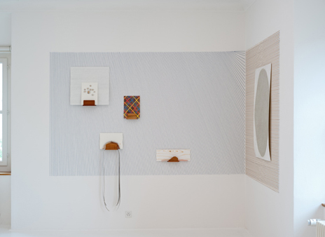 Wadbespannung: Baumwollfaden und Nägel, Zeichnungen:Farbstift und Kaffee,